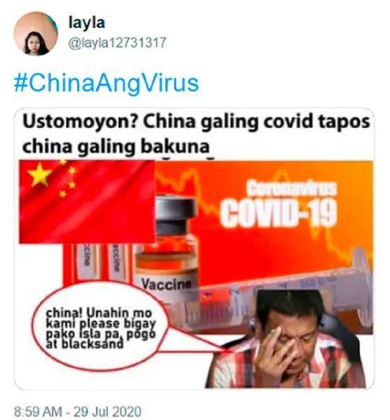 路透社在社交媒体平台 X(前身为推特)上发现了至少 300 个账号,这些账号与熟悉这场行动的前美国军方官员的描述相一致。这些账号几乎都是在 2020 年夏天创建的,以 #Chinaangvirus 为口号——在菲律宾语中意为 " 中国是病毒 "(如下图)。