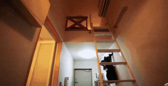 睡觉的时候呢,就要利用梯子到“二楼”了。