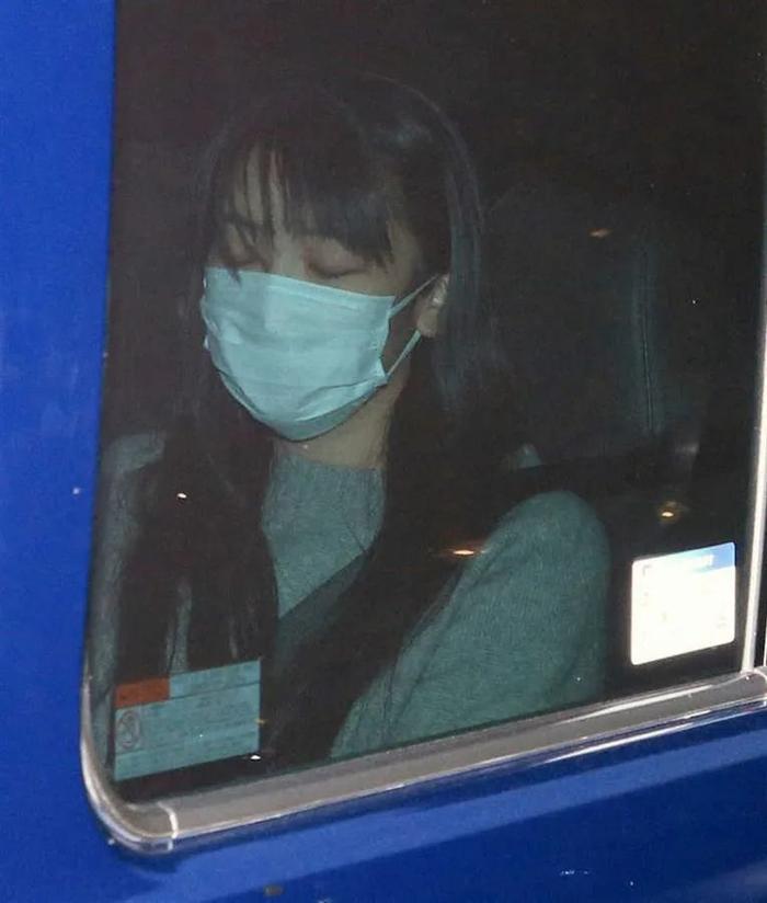 这次的穿搭也比较随意,一件灰蓝色的针织衫,搭配一件黑色外套,长长的刘海快遮住了眼睛,也还没来得及去修剪,小巧脸虽然被口罩挡住了一大半,却仍然可以看出甜美长相。