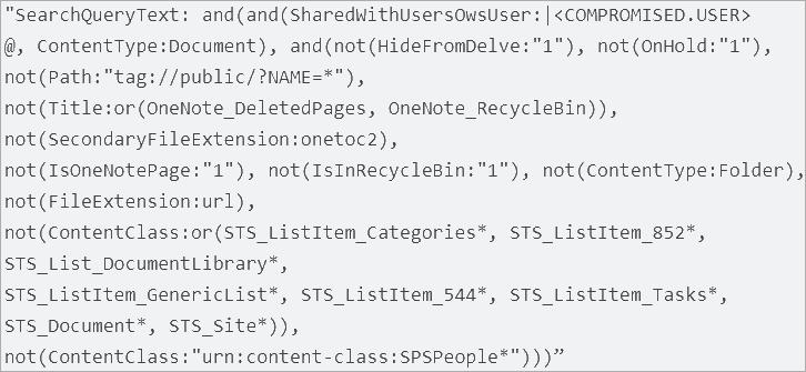 例如,威胁分子使用 Microsoft Office 365 的 Microsoft Office Delve 搜索和发现工具来识别活跃项目、感兴趣的讨论和机密信息。