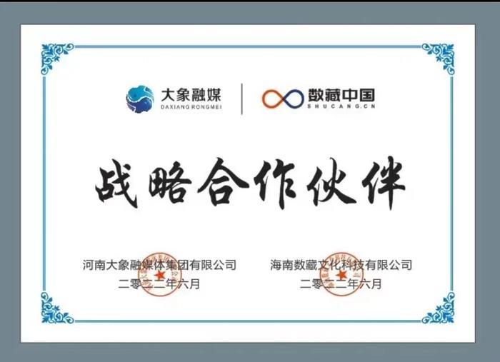 7月1日,“创意无界设计河南”数藏中原上线暨合作签约仪式在河南广电大象融媒一楼新闻发布厅举行。会上,数藏中国授予河南大象融媒体集团有限公司战略合作伙伴称号,开启国内首家省级分站。