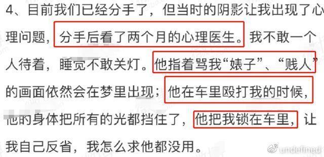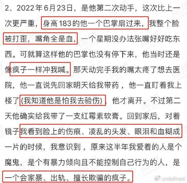 但从女孩所写的内容来看,吴瀚并不认为打女男人是什么丢人的事,反而偏激的说女人不听话就得使劲收拾。而且每次吴瀚打女友的时候,都会情绪失控,即便对方被打的满嘴是血也停不下来。