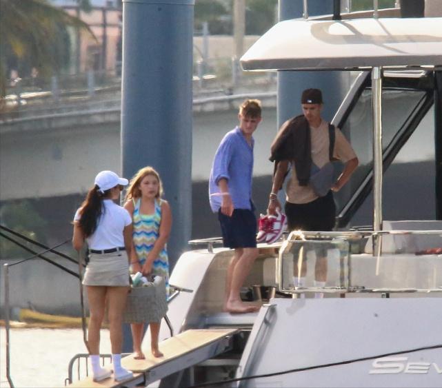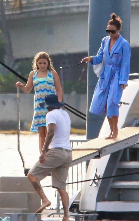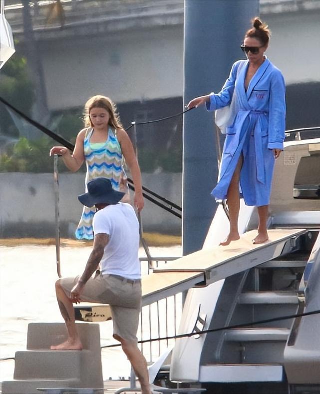 没错,这一家人这次在迈阿密又开始度假了,工作之余当然要放松一下了。一家人坐着自己家的豪华游艇,贝嫂更是不见外,直接穿着睡衣就出门了。