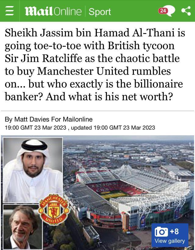 所以,格雷泽家族知道,如果到了比拼财力的阶段,拉特克利夫终究会有心无力,60亿英镑的要价加上未来的硬件设施的投资差不多80亿了,而且还需要在转会市场上的投资,如此大的一笔支出不是个人资产150亿英镑的拉爵爷可以轻松应对的。而阿勒萨尼背后坐拥数千亿资产的卡塔尔财团才是正解,才能满足他们的狮子大开口。