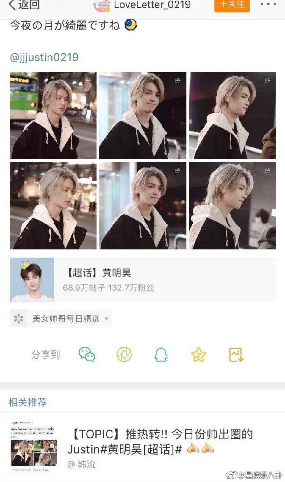 爱豆出圈神图之黄明昊Justin造型实力出圈:纯路人转推很高,以前更是有高达四万的转发。因为推特上一个账号只能转一次,所以这数据真的很厉害了!昊昊的海外人气也很高! hmh @jjjustin0219