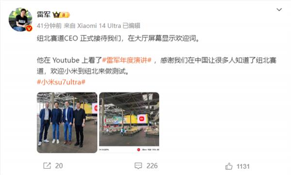 纽北赛道 CEO 在 Youtube 上看了雷军年度演讲,感谢小米在中国让很多人知道了纽北赛道,欢迎小米到纽北来做测试。