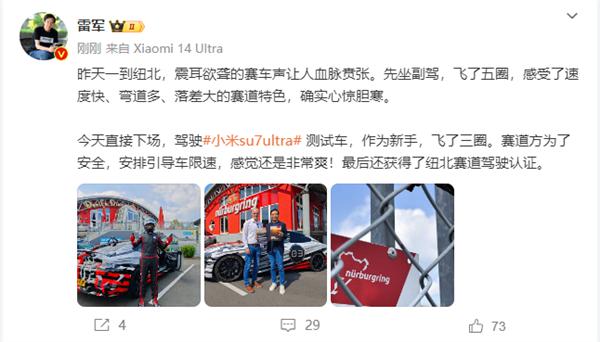雷军纽北赛道飞了五圈:直呼心惊胆寒