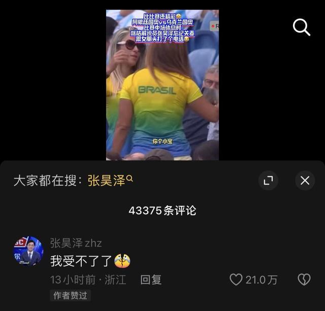 事后,张昊泽本人在相关视频评论区回复 " 我受不了了 ",并配上裂开流泪的表情包。