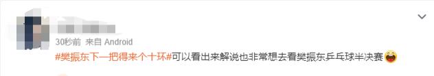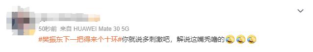 这也引起了网友对解说的调侃,相关话题 # 樊振东下一把得来个十环 # 直接冲上了微博热搜第一。