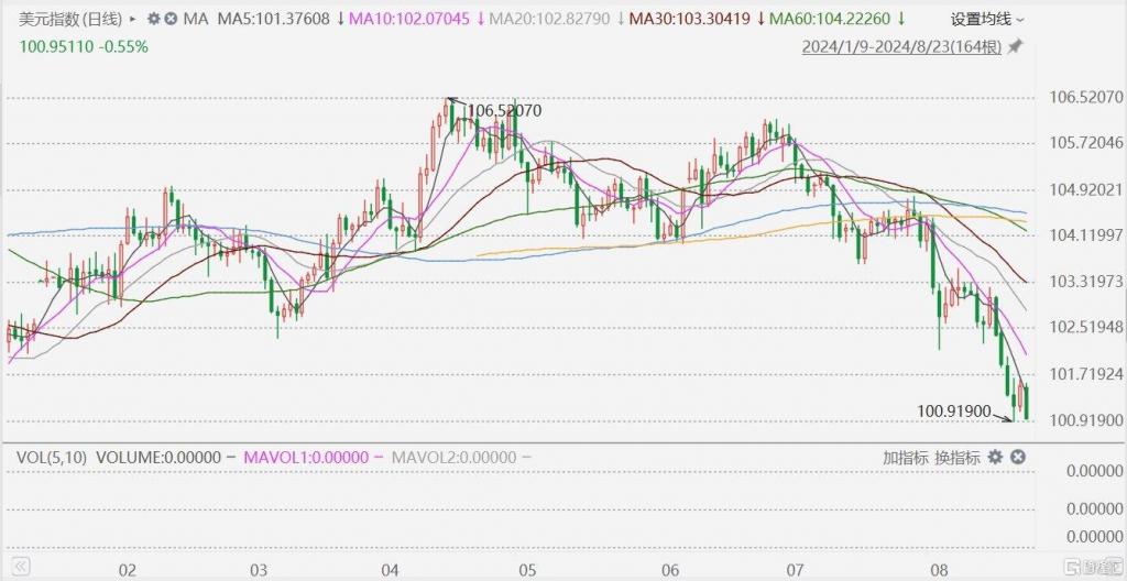 美元指数大幅跳水,跌幅扩大至 0.5%,跌破 101。