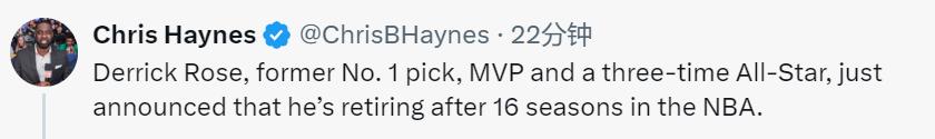 结束16年职业生涯!罗斯正式宣布退役:最年轻MVP告别NBA