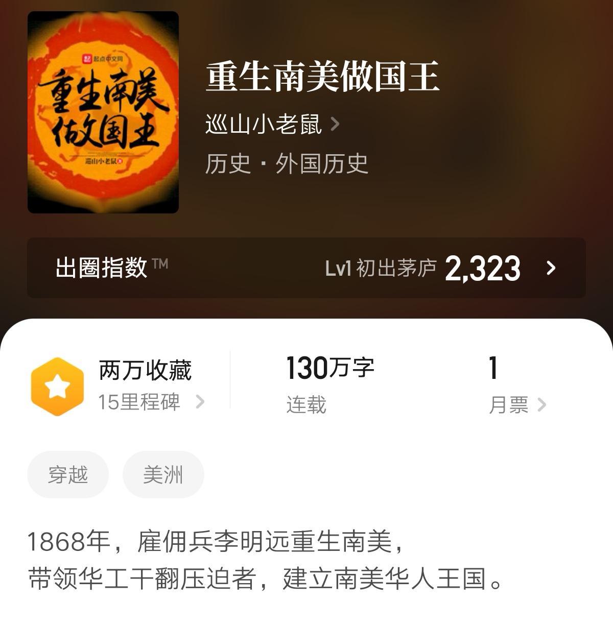 今天小龙在这个给大家推荐4本重生到一战时期左右,在海外领导华人建国的小说。
