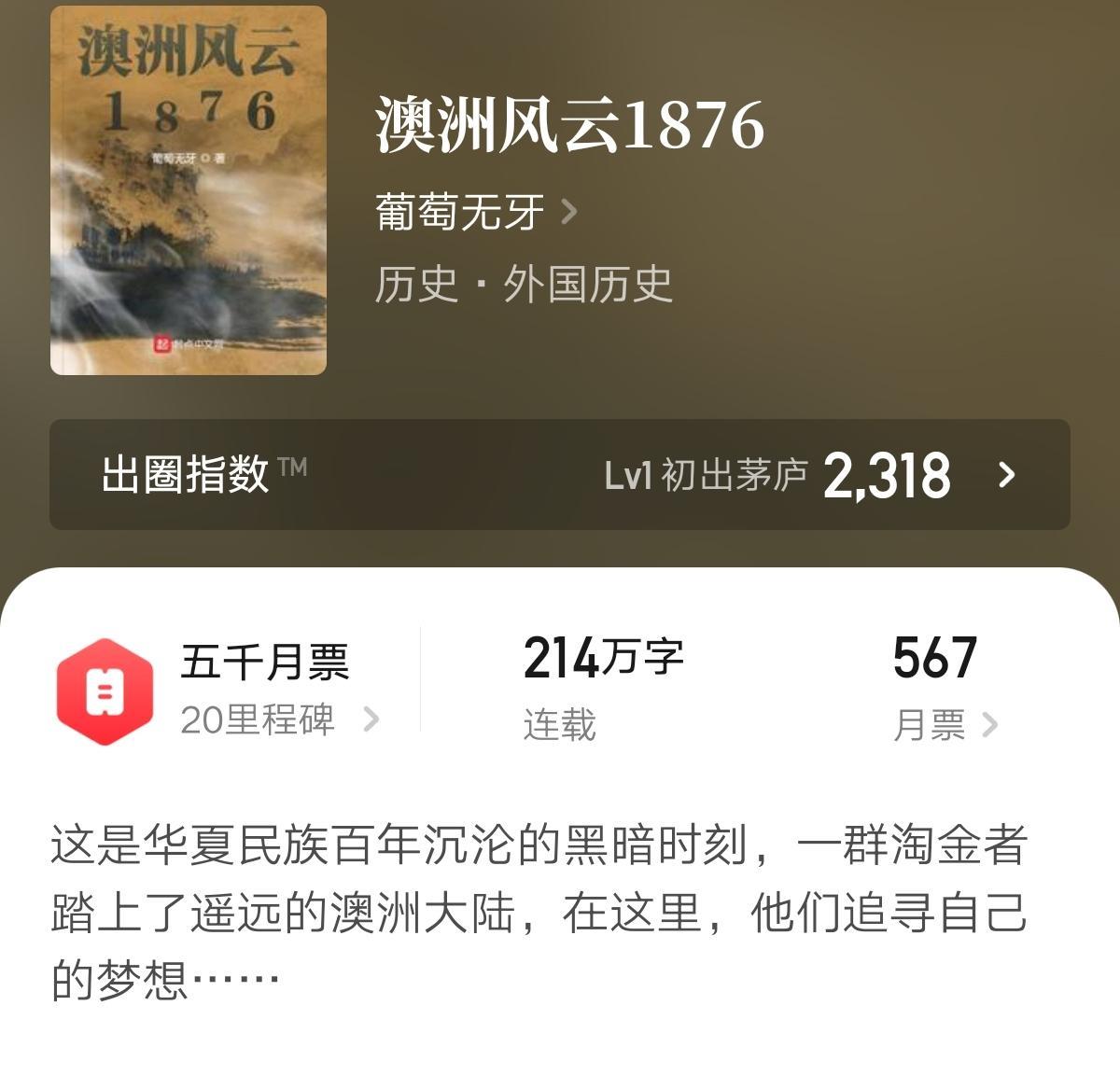 主角李福寿重生成为1876年一个到澳洲淘金者,开局利用三仙归洞的戏法赚取了第一桶金,后开饭店,搞连锁快餐迅速积累财富,之后收买人心,收集武器,一统澳洲,建立新的华人国家。
