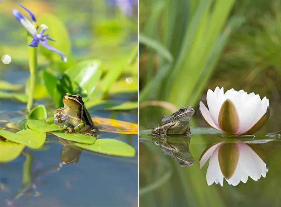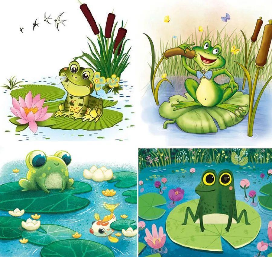 呱呱呱、呱呱呱、呱呱呱是谁发出来的声音呢?原来是小青蛙呀!它在荷叶上蹦来蹦去,真是有趣极了!你瞧!青蛙的身体看上去很光滑、很软,它身体的颜色是绿色的,皮肤上还有着深浅不同的绿色花纹,它的肚皮是白色的。正因为它的身体是绿色的,方便它隐藏在草丛中,既能捕捉害虫,也能保护自己,被人们称作“农田小卫士”呢!让我们一起来画一画吧!