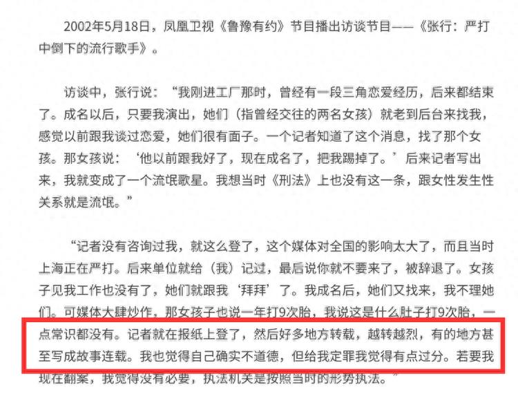 他说自己确实和两个女生同时交往过,但那都是成名之前在电子厂打工时候的事情了,当时自己正在和工厂里的一个女生谈恋爱,但是初恋突然找来了说自己还是忘不掉张行,当时的他不舍得和女友分开,更不舍得看白月光难过,索性直接没告诉对方自己已经有女朋友了。