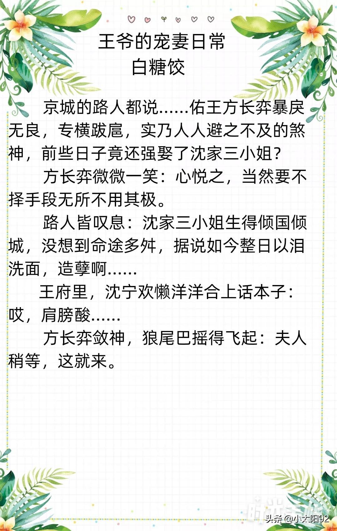 第一本:《王爷的宠妻日常》作者:白糖饺