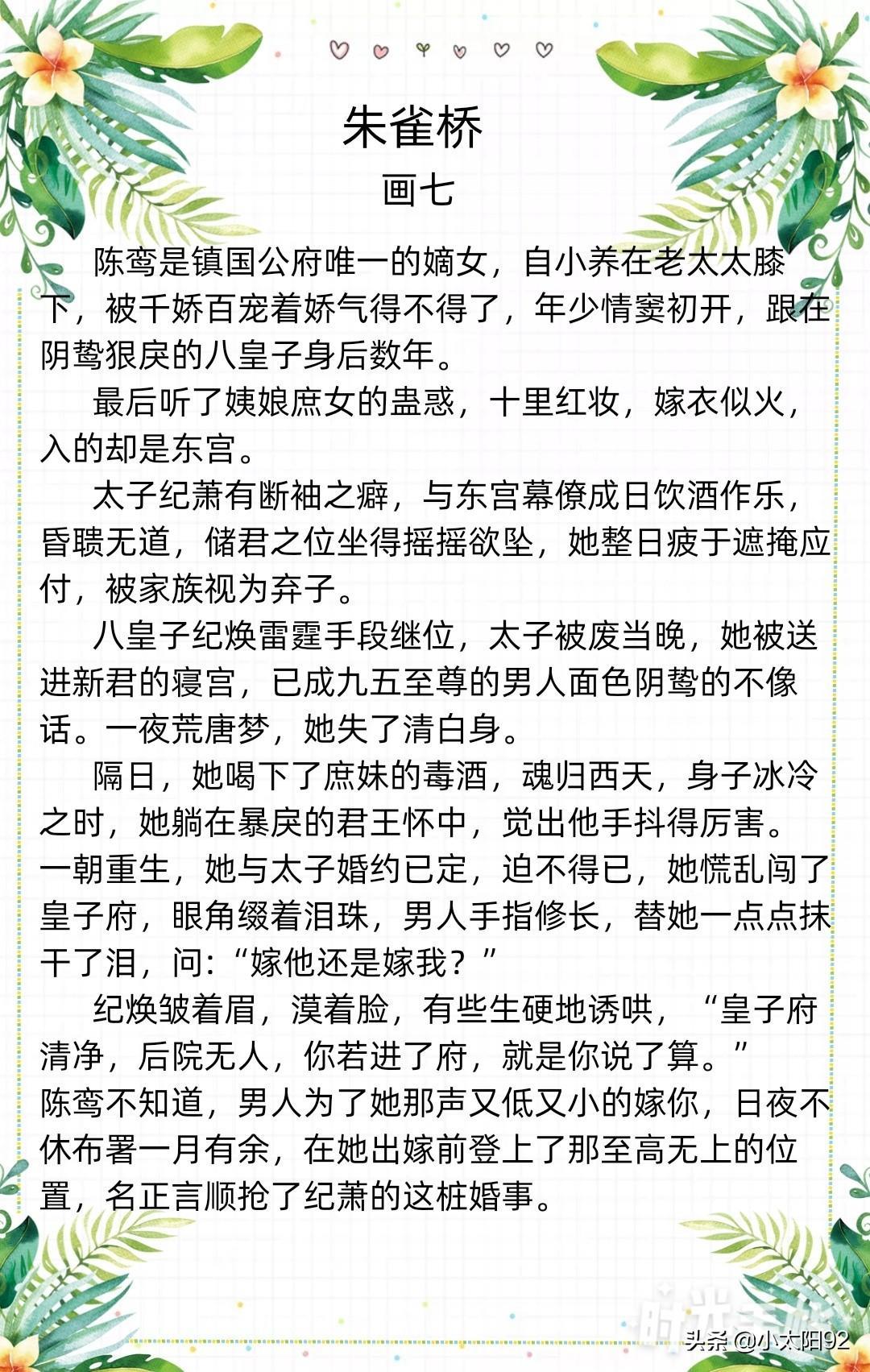 古言重生甜宠文《王爷的宠妻日常》《朱雀桥》《权戚之妻》