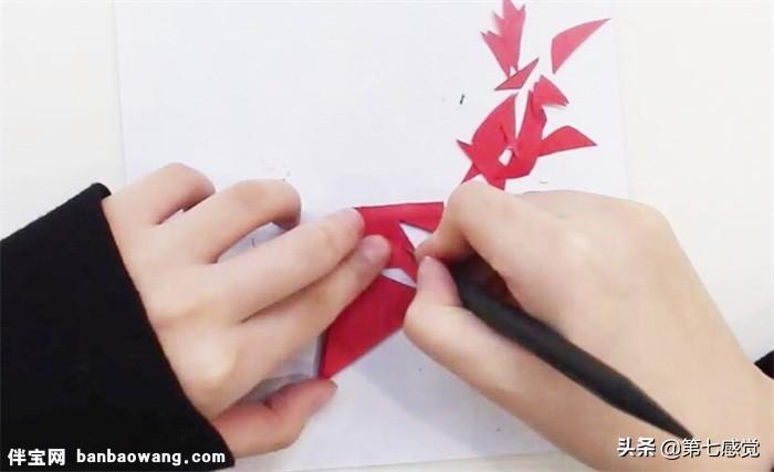 3、按照画好的纹路用剪刀剪去周围多余的部分。