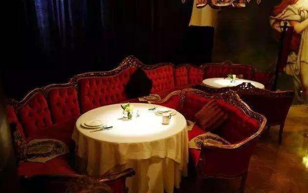 餐厅里随处可见到店主人从世界各地淘来的古董,包括用作隔绝距离的西式古典橱柜、瓷器和玻璃器皿。