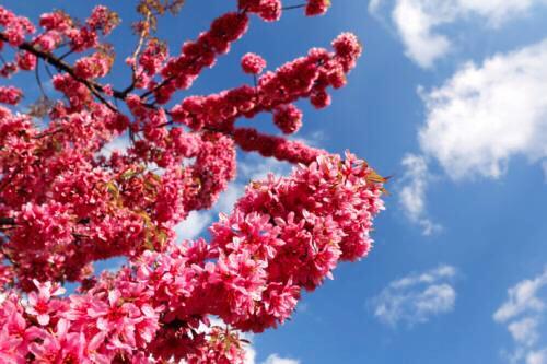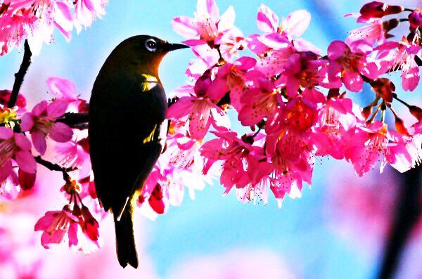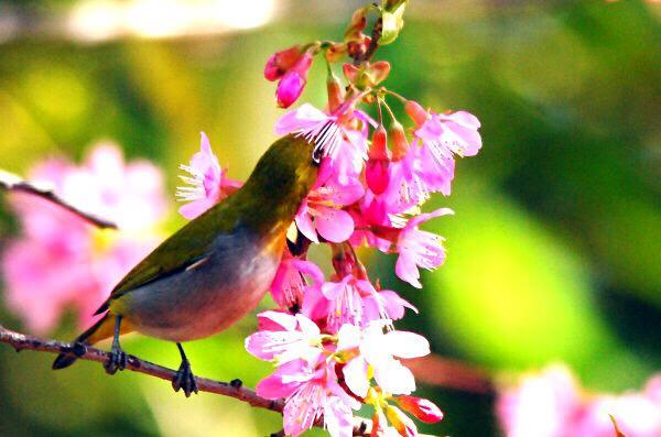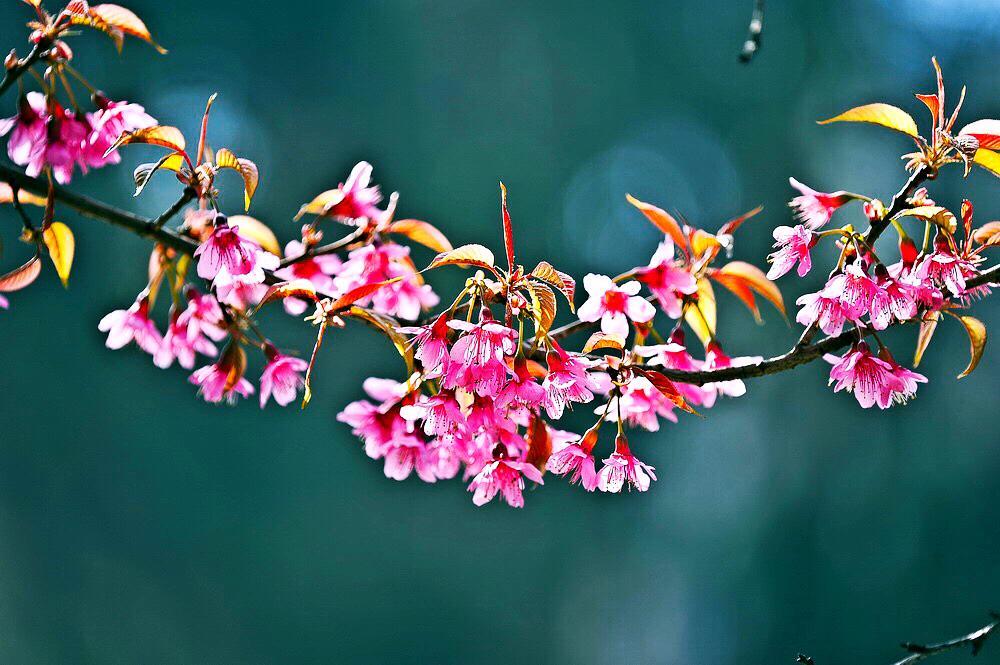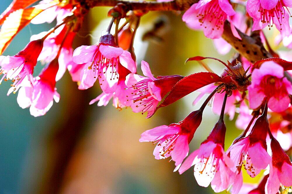 冬末春初,绚烂的冬樱,妖娆芬芳,争奇斗艳,在兰天白云和绿色茶园的映衬下,摇曳生姿,如霞似火,为人们送来了春的第一缕芬芳。