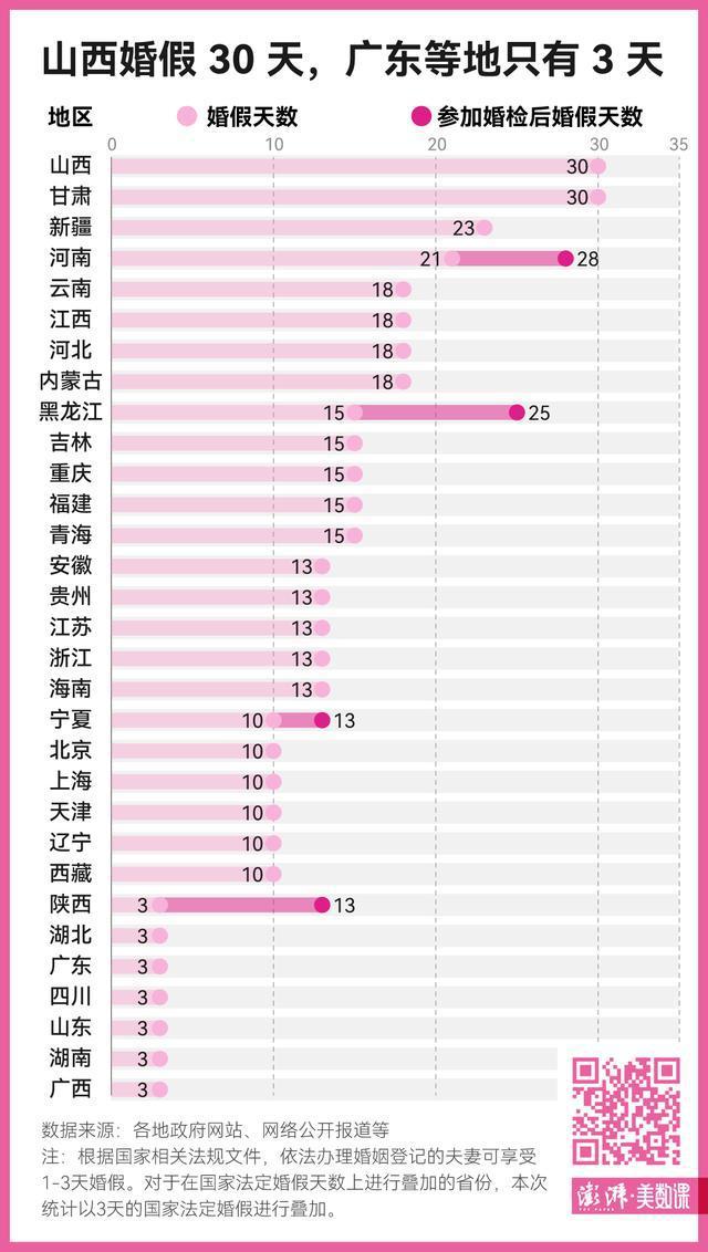 全国婚假排行榜:山西甘肃长达30天,广东广西等地仅3天