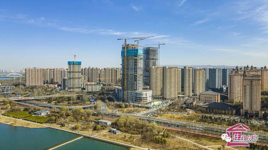 除了万达广场,两座超高层已经伫立在了龙城大街,东面的一座已经封顶,正在进行安装玻璃的工作,靠近汾河的这座即将封顶。