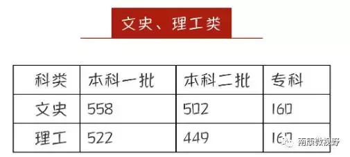第一批本科文史类 558分、理工类522分;