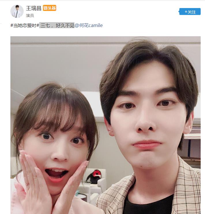 王瑞昌配文还带了“当她恋爱时”,两人这是要合作新的网剧吗?
