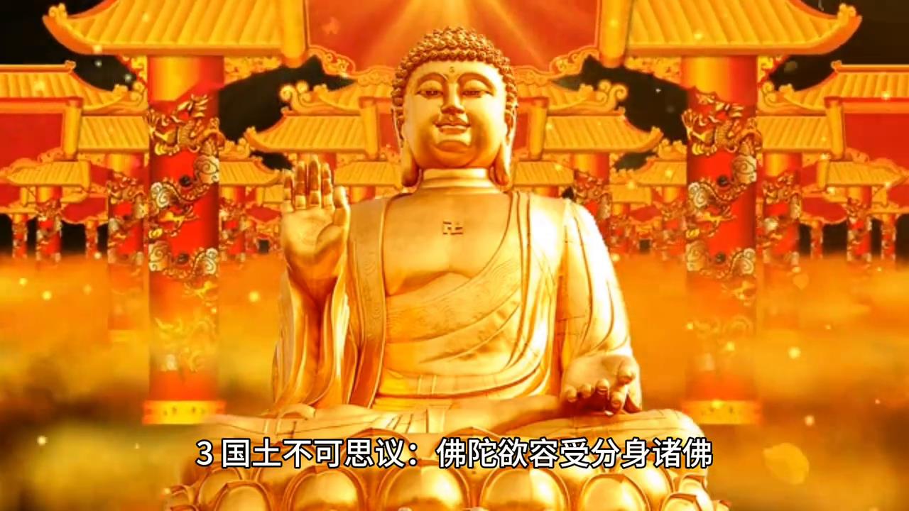 ·3、国土不可思议:佛陀欲容受分身诸佛,各遍八方六万亿,由他国士同为净土,乃至《如来神力品》云:十方世界通达无碍,如一佛土。