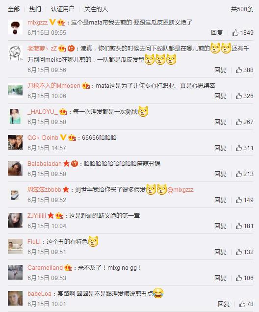 对香锅的新发型,评论中也是满满的心(恶)疼(意):“每一次理发都是一次赌博”“中野恩断以绝后野辅再掀恩断义绝”……在评论中,突然发现了“恩断义绝”真身Doinb的评论!
