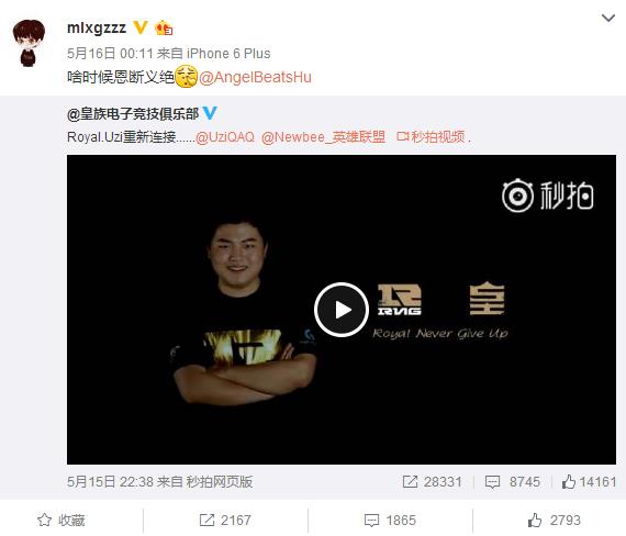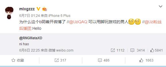 当中野“恩断义绝”的第一章还未散去,mata似乎按捺不住,也开通了微博。RNG几人趁机“挑逗”一波,欺负mata看不懂中文啊!Uzi也加入搞事boys,称mata是“可以用脚玩游戏的男人”,麻辣香锅则继续搞事本色。