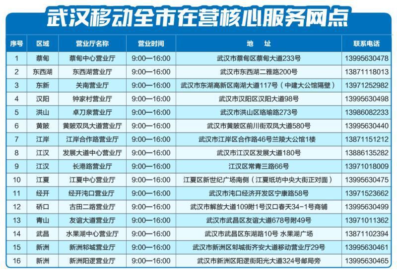武汉移动16家核心营业厅正常营业