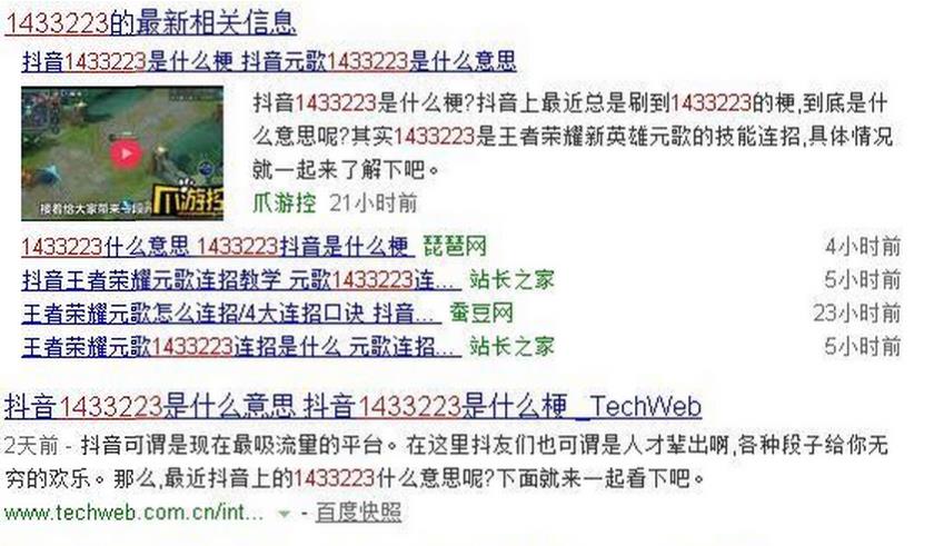 最近,抖音上面火了一个新梗"1433223",毫无逻辑的一串数字引得众多吃瓜小伙伴纷纷搜索这个大火的梗,其实"1433223"不光出现在抖音上,在许多直播平台的直播间中,也有这段魔性数字的身影,今天小编就来带大家解读一下这串数字的来历。