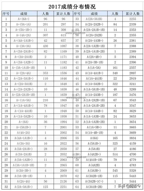 知道了南宁市二中、三中近几年来的实际招生人数及录取分数线之后,再了解 2017 年、2018 年和 2019 年的成绩分布情况(传送门),掌握自己的排名,做到心中有数,这样可以提高被二中、三中录取的概率。具体见下面三个成绩分布情况表(部分):