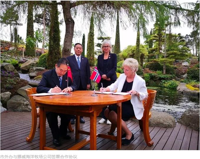 挪威三文鱼养殖拥有世界领先的管理喂养模式和严格的环境卫生控制体系,对烟台市对标先进、打造一流的海洋牧场具有极高的借鉴意义。代表团与挪威斯塔万格市蓝色星球渔业协会(Blue Planet)、布雷姆内斯渔业公司(Bremnes Seashore)、海洋牧场公司(Ocean Aquafarms AS)进行渔业养殖技术专题交流会,并深入考察了挪威布雷姆内斯渔业公司海洋牧场、三文鱼育苗厂及加工生产线、关键设备,详细了解了深远海渔业发展全产业链,包括挪威渔业法规制定、海洋牧场选址要求、养殖技术及风险、技术推广、自动化控制喂养系统、前沿科技攻关动态等。布雷姆内斯渔业公司是挪威最大的集三文鱼养殖、加工、销售为一体的企业之一,建有28个海上牧场,采用最先进的养殖工艺及防疫、屠宰和深加工技术。烟台市海洋发展和渔业局、长岛县、市外事办分别与布雷姆内斯渔业公司(Bremnes)、斯塔万格蓝色星球渔业协会(Blue Planet)、海洋牧场公司(Ocean Aquafarms AS)签署了4个合作协议,将进一步在海洋牧场建设、养殖品种引进、海洋生物医药、科技研发、海洋生态修复、市场开拓等方面加强合作,务实推进一批合作项目。