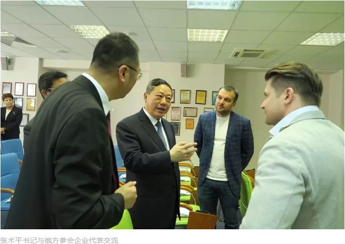 在俄罗斯期间,代表团在莫斯科政府科技园举行“创新合作交流会”,莫斯科政府科技园主任捷普洛夫、俄罗斯自然科学院彼得琴科院士、莫斯科市企业家和创新发展厅库兹涅佐夫处长以及欧亚经济联盟、俄罗斯YANDEX公司、GEOS核电代理公司等40余名代表参会,张术平书记与莫斯科政府科技园捷普洛夫主任共同为“烟台市创新合作交流工作站”揭牌。会上,山东华谱检测技术有限公司与山东云融通电子商务有限公司分别与俄罗斯企业签署环保科技、电子商务等领域合作协议。张术平书记会见了前来参会的顿河畔罗斯托夫市副市长卡茹霍娃,双方回顾了两市结好以来在高校、文体等领域交流成果,讨论了未来在经贸、教育等方向的合作发展规划。