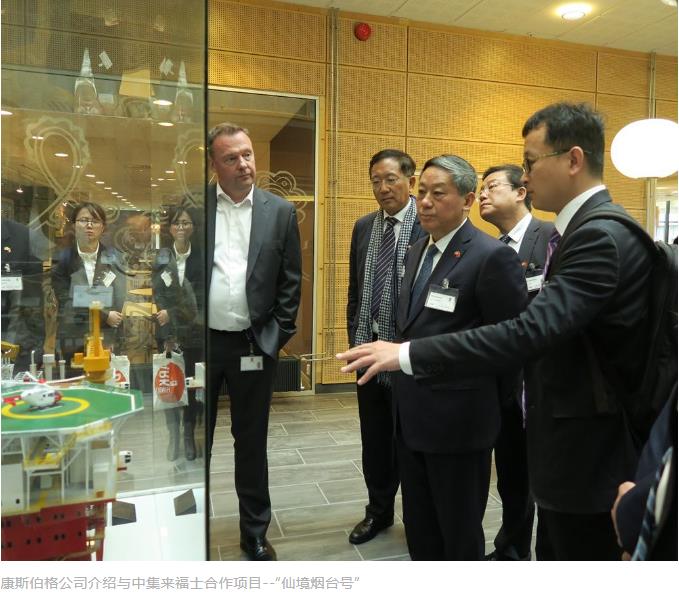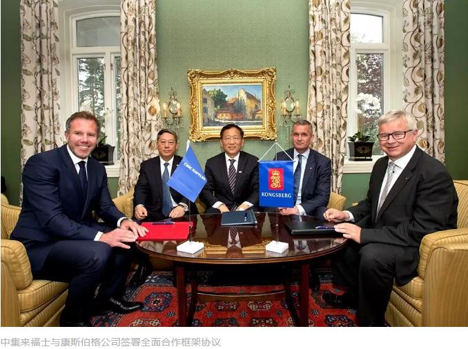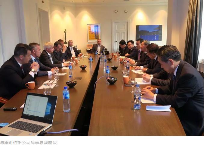 5月23日,代表团考察康斯伯格公司(Kongsberg)产业园,参观其数字仿真实验室及在研设备,并与其海事总裁等座谈。康斯伯格公司是挪威海事、防务和数字化领域最重要最尖端的高科技企业,是一家研发海洋油气、渔业、海运等领域自动检测控制系统的世界知名企业,中集来福士建造的“蓝鲸1号”采用的就是该公司的动力定位系统。代表团见证了中集来福士与康斯伯格公司签署全面合作框架协议,鼓励中集来福士与康斯伯格公司加强合作,并根据中国海况进行设计优化,在海洋油气、海洋牧场建设、海上风电等领域再创佳绩。