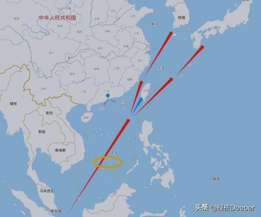理由很显然,中国计划中的南海圈,早就从菲律宾头上踩过去了,西太平洋的主要变量在日韩,就算把印度算在内,菲律宾也排不上号,下面这个就是菲律宾脱离日韩之后,日韩如果对抗的贸易路线,黑海可能很小,但南海很大,南海这个大局,菲律宾连最终博弈对象都算不上,真的只能算个球。