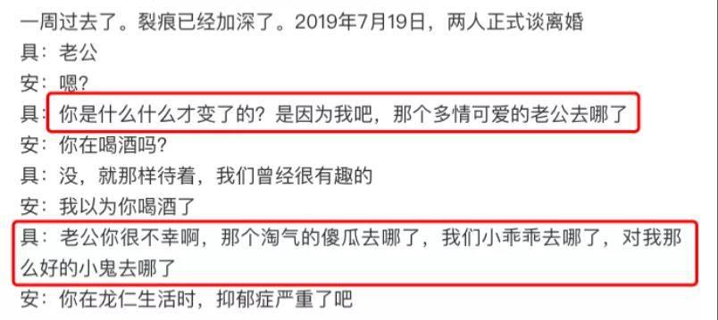 最重要的是她还爱着这个男人呀,她不想离婚呀。也不甘心就这样没有任何缘由被老公抛弃呀。然后就有了无数不理智的行为,也曝光也他们无数的聊天记录,开始了互相折磨互相诋毁的日子。