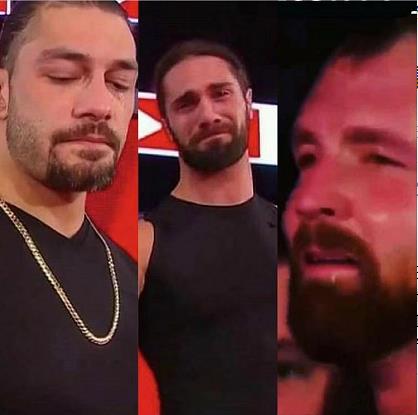 再看看罗曼雷恩斯的两位好兄弟,赛斯罗林斯和迪安安布罗斯,虽然两人在剧情中已经产生不和,迪安安布罗斯已经转为反派,但他们在罗曼雷恩斯宣布离开擂台当天,都哭成了泪人。