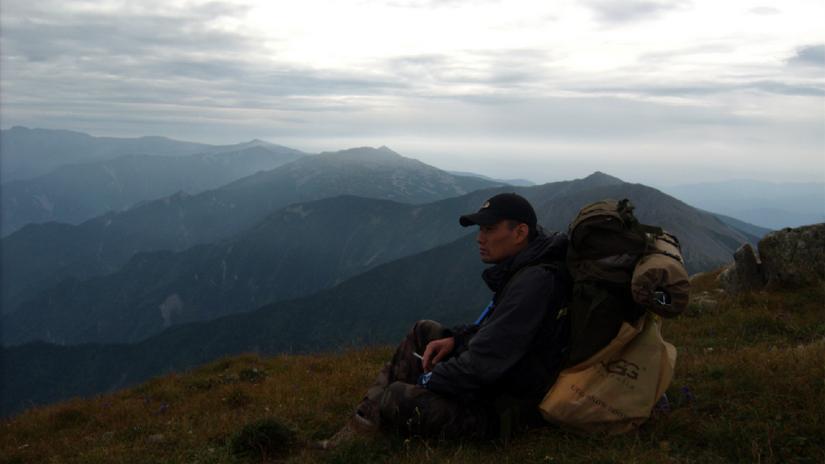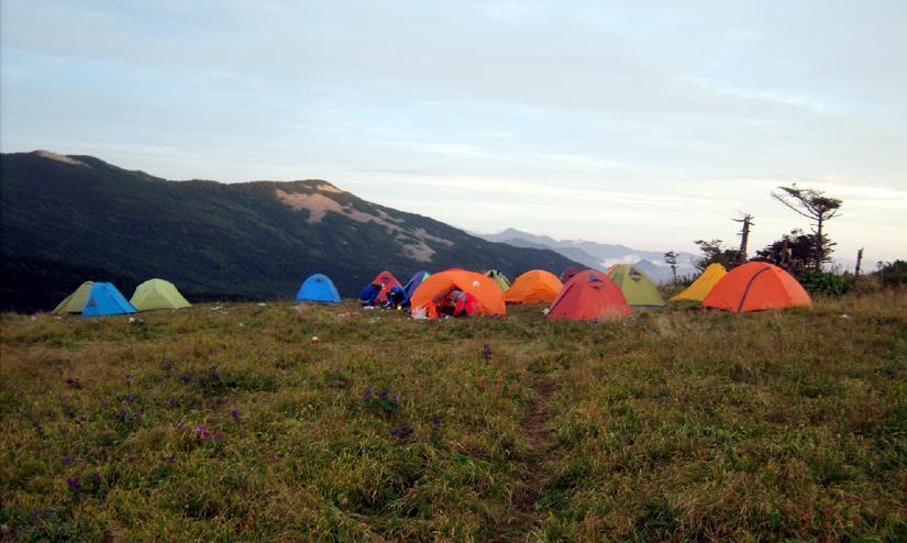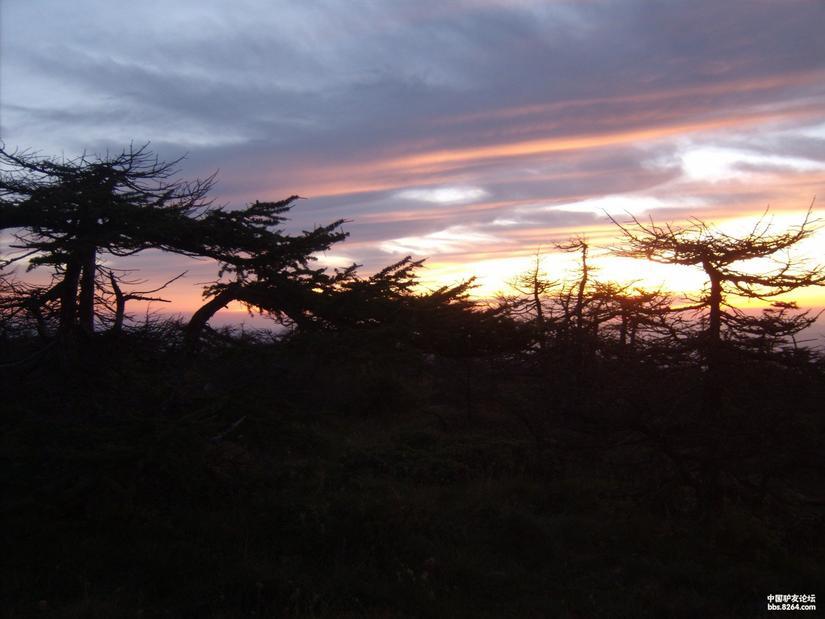 第一天是全程拔高最多的一天,从进山口到盆景园大约高1500米左右。等我们到了营地,正赶上日落晚霞,在驴友的帮助下搭帐篷做饭,山顶的温度已经非常凉了,钻进帐里就不想出来,拉开帐篷拉链看了看外面,一只手伸出帐篷试试风向,一丝风都没有,夜里漫天的星空银河,还挺震撼的,没那功夫数星星,还是睡袋里暖和,手机也有信号,就是被山上的地老鼠打扰了一夜。神经衰弱的我,深度睡眠也就成了奢饰品了。