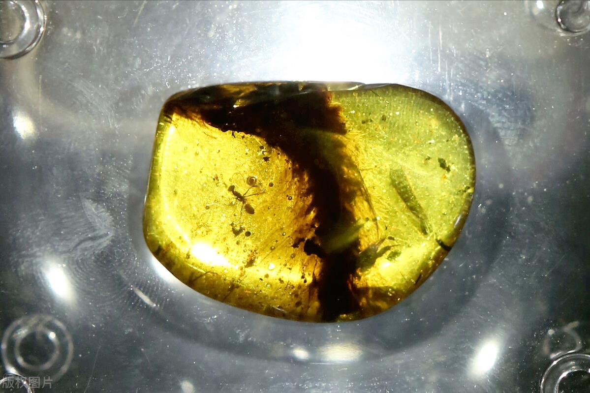 这块琥珀里有2只蚂蚁,然后还有一丛类似植物的东西,于是当地人就把这块琥珀命名为“蚂蚁上树”,准备当成纪念品兜售给在缅北的外国游客。