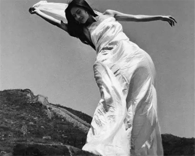 这是杨丽萍年轻时候在长城拍摄的照片,画面中的她翩翩起舞,特别的像“仙女”。