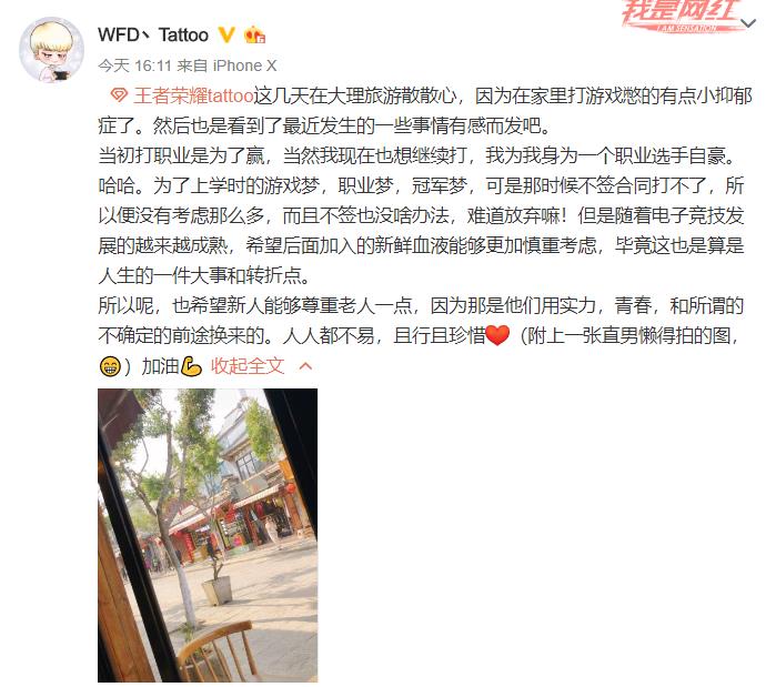 王者荣耀:原XQ队员Tattoo发博-希望新人尊重老人,且行且珍惜