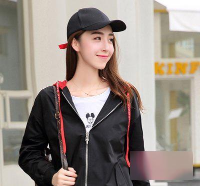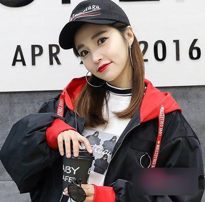 对黑长直发情有独钟的校园妹子,2018年春天就梳齐发尾黑色长直发,外面穿深蓝色棒球服的时候,里面内搭颜色最好鲜亮一些,帽子颜色也不要太暗,借助混搭时尚,打造青春靓丽淑女形象。