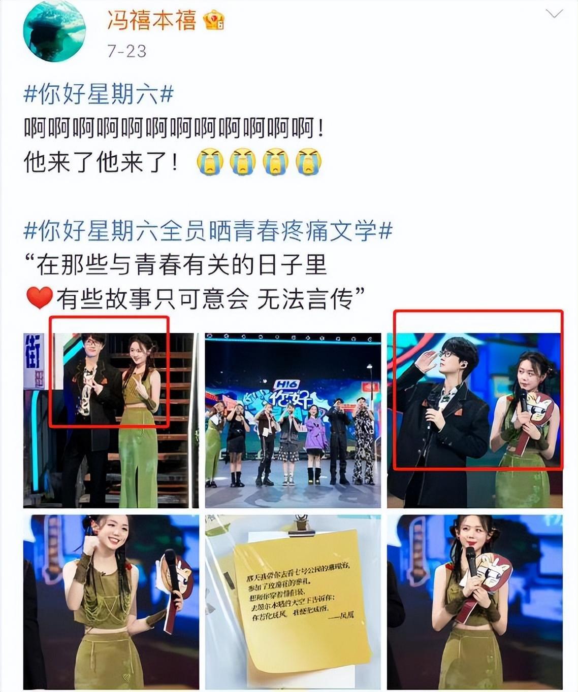 在7月份的时候,《你好星期六》有一期节目播出的时候,冯禧曾发过一条微博,称:他来了!在那些与青春有关的日子里,有些故事只可意会,不可言传!还配上了自己和许嵩的合影。
