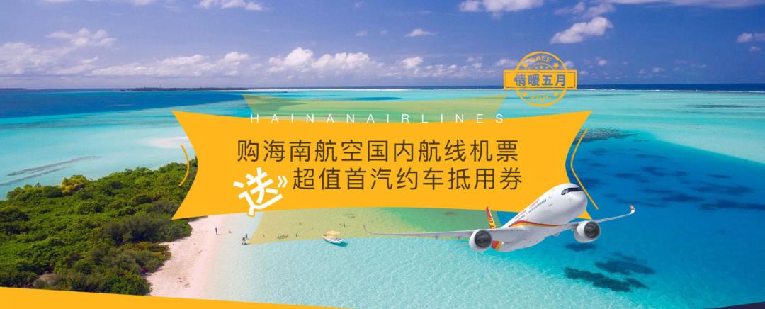 即日起至5月31日,凡在海南航空官网、App购买海南航空(HU)、大新华航空(CN)自营国内航线客票的旅客,在购票后即可领取7张首汽约车专车优惠券。