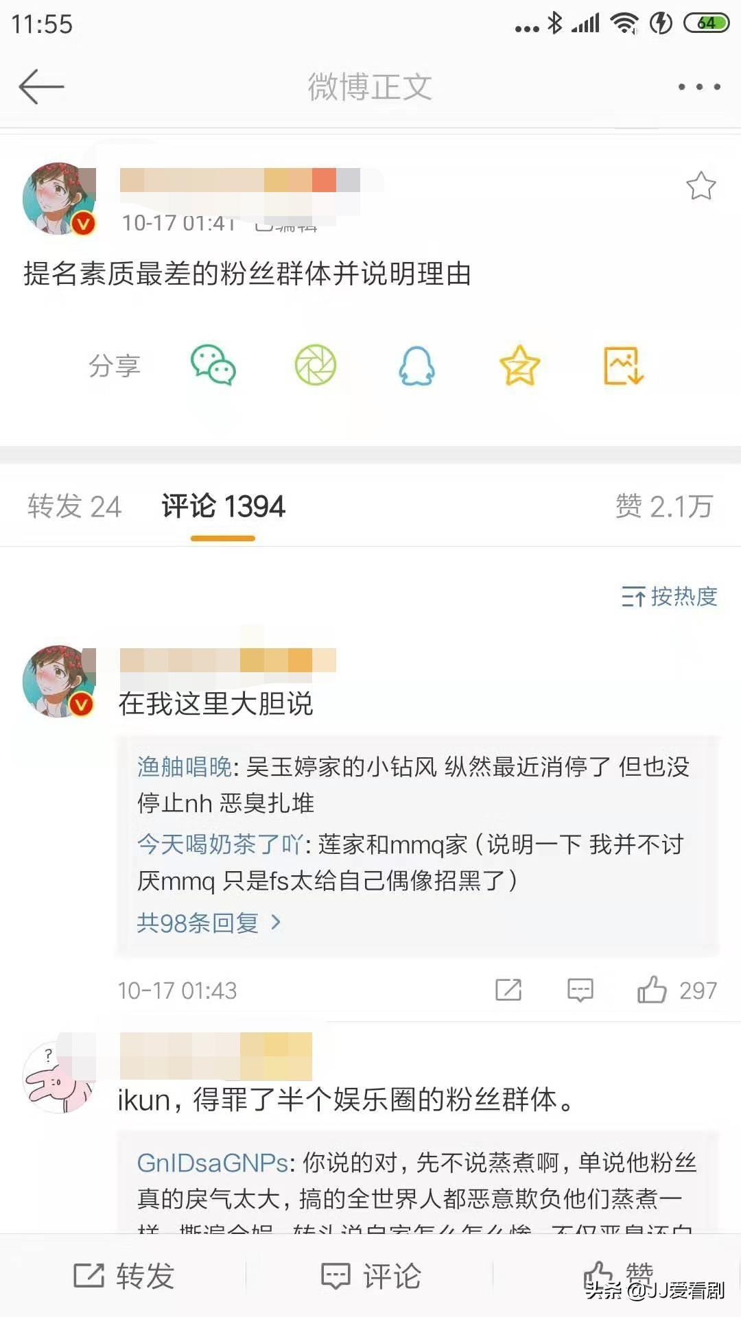 每个粉丝都非常热爱自己的Idol,但是在支持自己偶像的同时,请对别人的偶像也稍微宽容一点。本期小编带大家看一下,娱乐圈最臭名昭著的粉丝群体,如果你的Idol在上面,扪心自问一下其中是否也有你的一份功劳。 (所有截图来自微博,不代表小编观点)