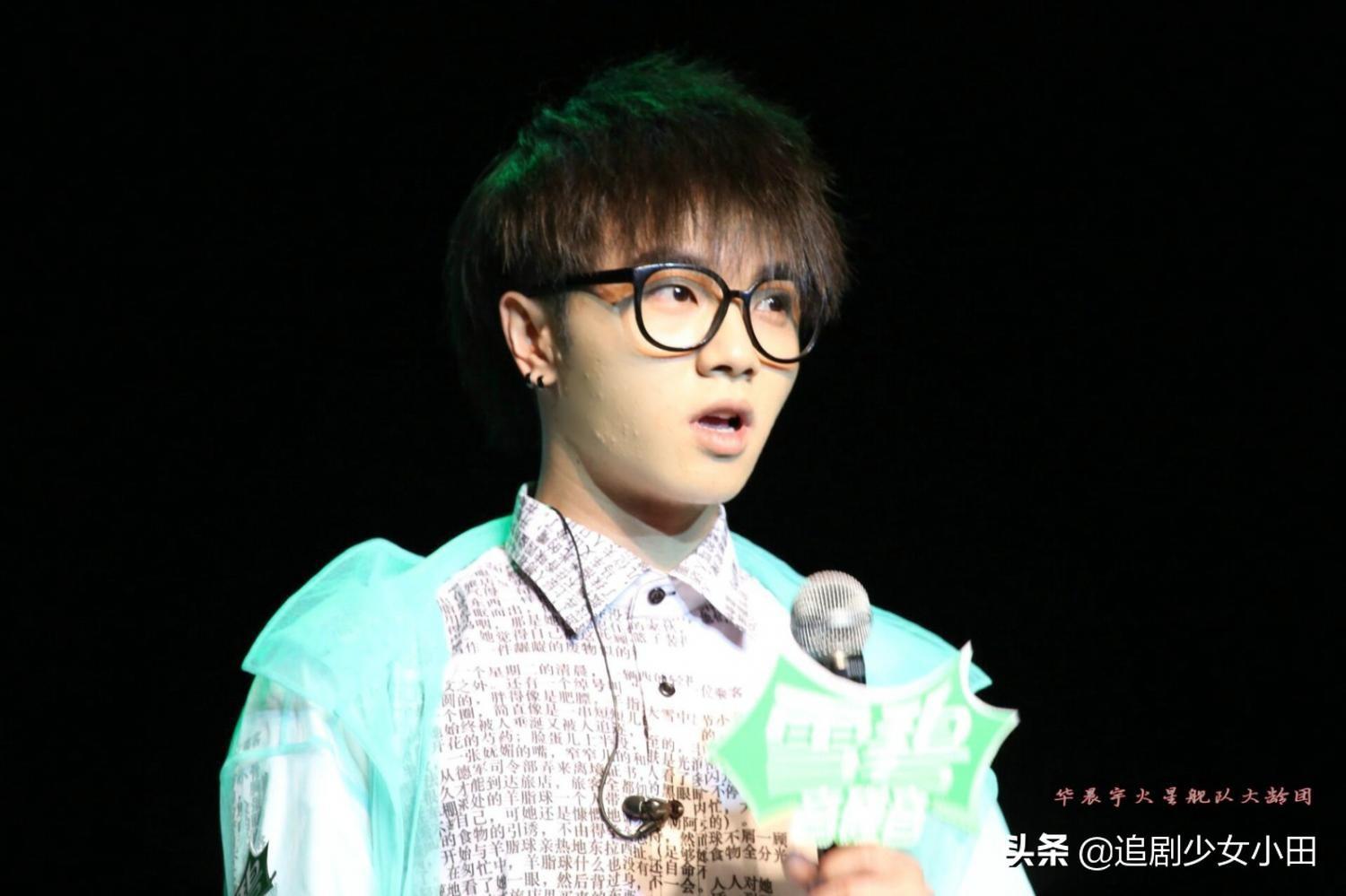 华晨宇2013年参加湖南卫视的《快乐男声》出道,当时他戴着黑框眼镜,皮肤黝黑,脸上也坑坑洼洼,脸型也是带着一点婴儿肥的。