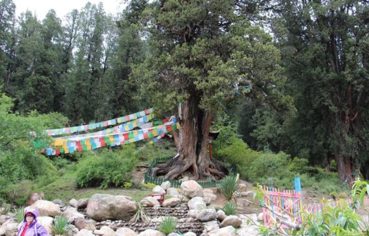 据说这是曾经主干被压过导致的。神木的树叶基本一年四季都是翠绿的,显得很是生机勃勃。根据记载,神木已经存活有2000多年的时间了。